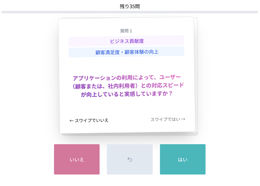 作成されたアンケートは2択の設問であるため、回答者の負担を最小限に情報収集が可能です。