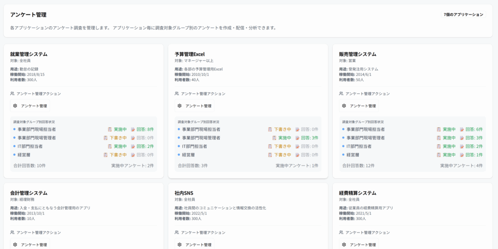 登録したアプリケーション別にアンケートが自動的に準備されます。